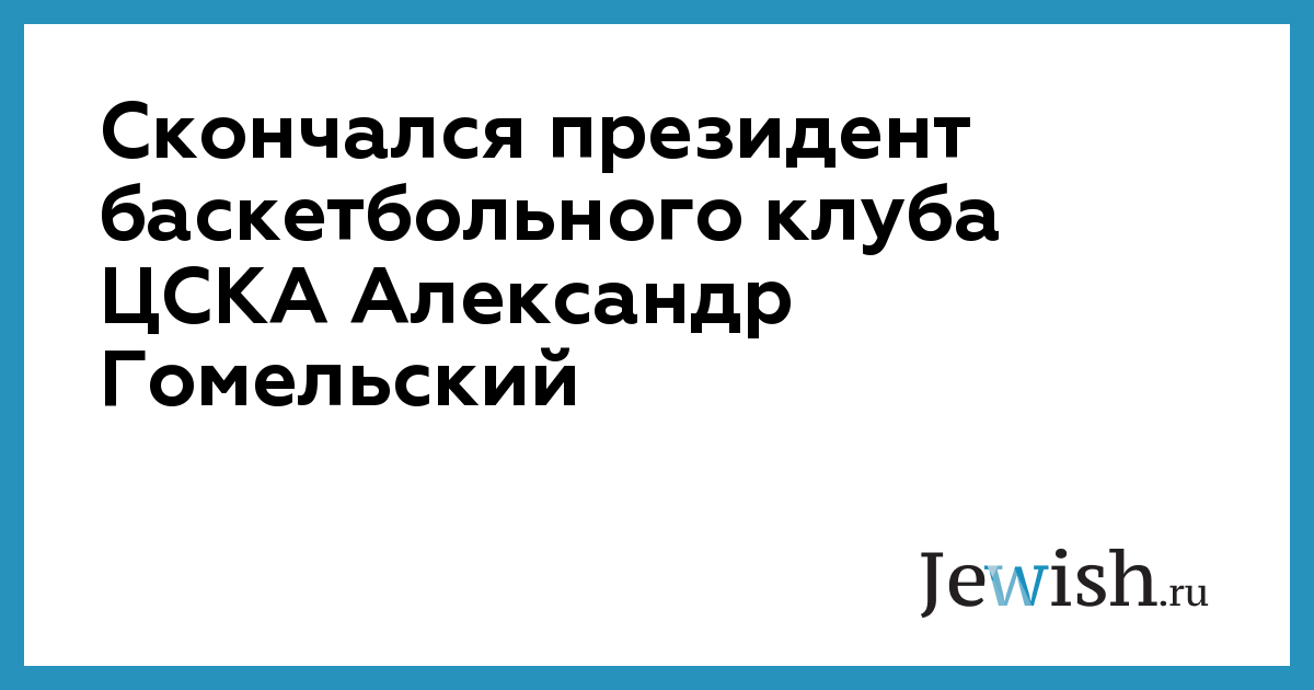 Во вторник утром на 78-м году жизни скончался президент баскетбольного клуба ЦСКА, заслуженный тренер СССР Александр Яковлевич Гомельский. Об этом сообщает официальный сайт армейского клуба.