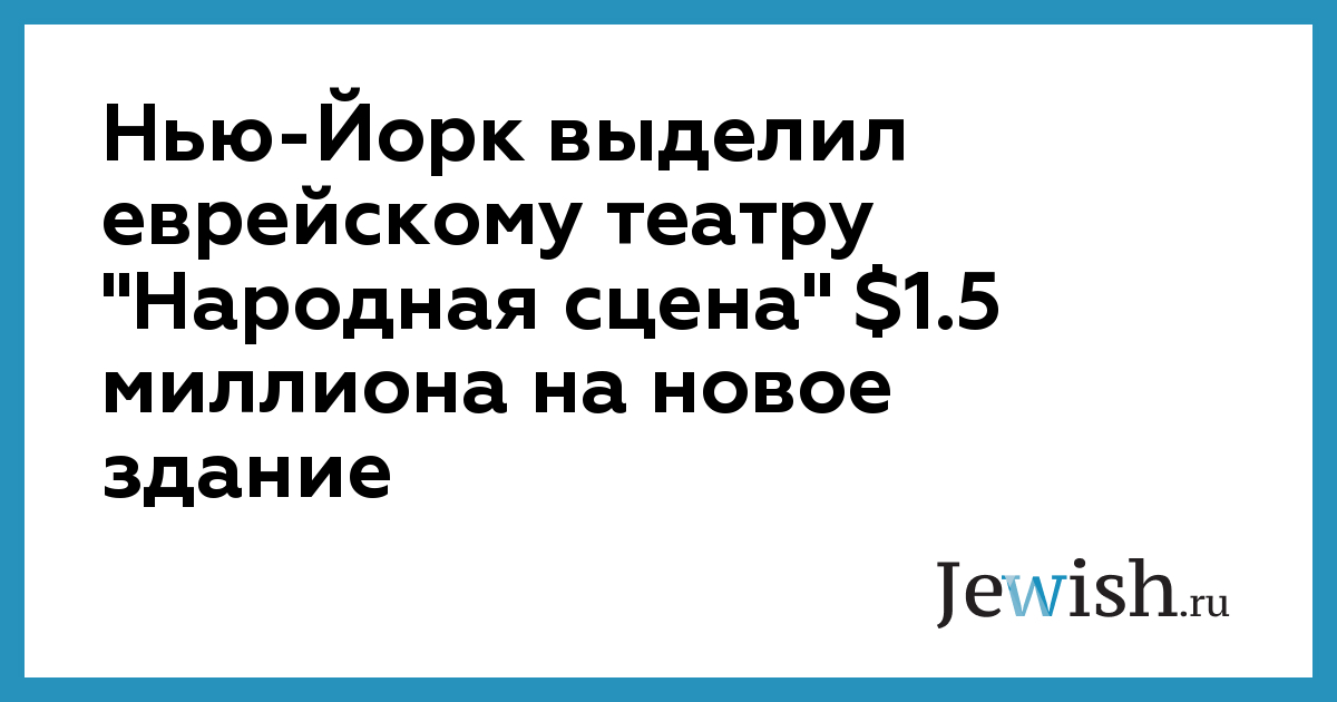 Нью-Йорк выделил еврейскому театру "Народная сцена" $1.5 миллиона на новое здание
