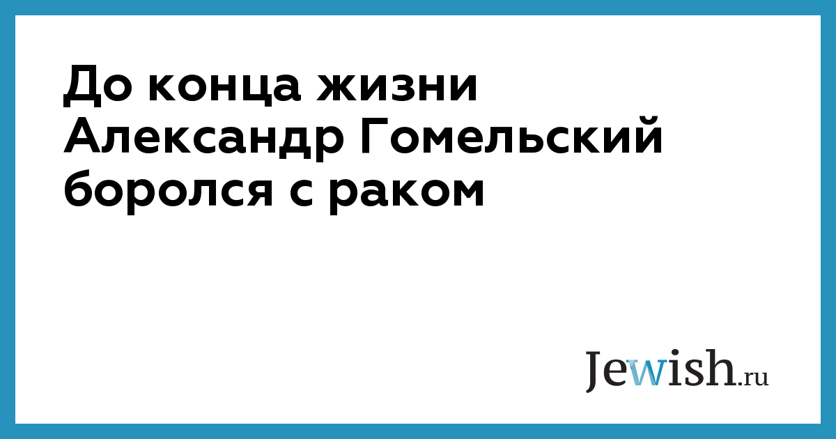 В 1998 году у Александра Яковлевича обнаружили под мышкой вспухший лимфоузел. В Израиле он проконсультировался с профессором Бен Басадом, который поставил диагноз — злокачественная опухоль. Гомельскому назначили четыре сеанса химиотерапии и три сеанса облучения, однако следующей весной болезнь снова дала о себе знать: у Гомельского увеличились лимфатические узлы на горле, стало больно глотать.