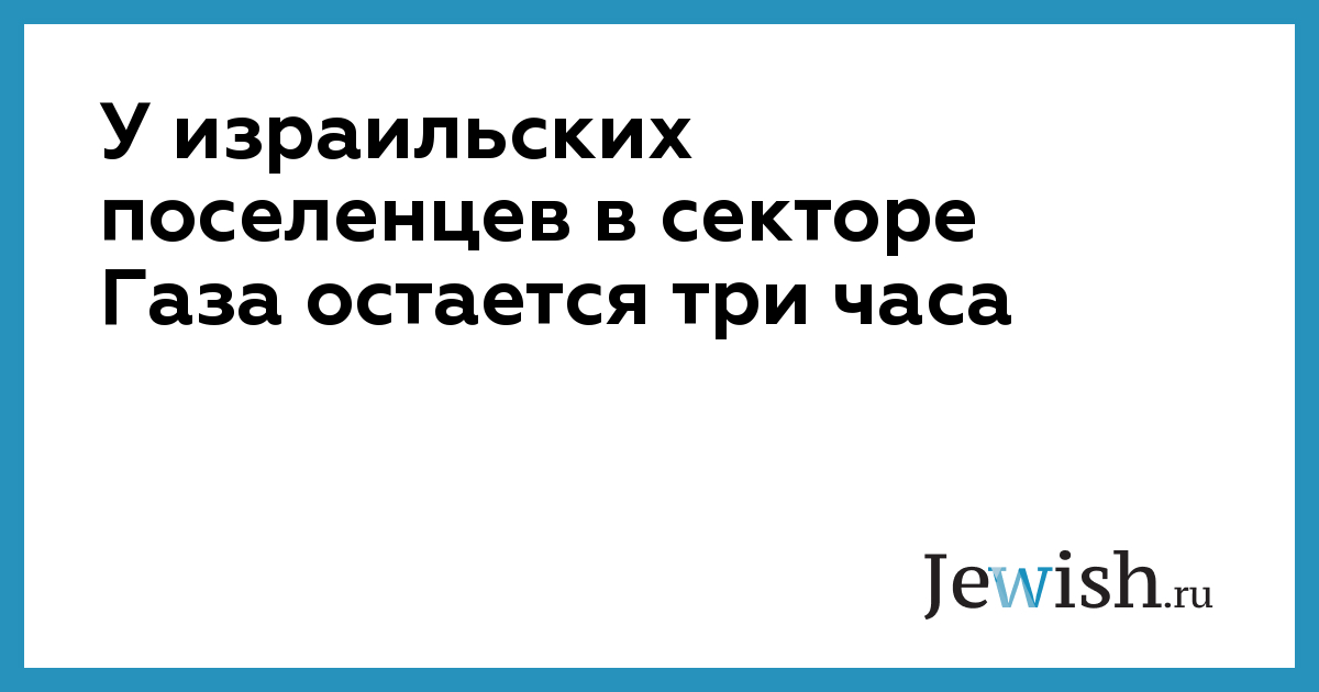 Три часа (на 22:00 мск) остается у израильских поселенцев в секторе Газа для того, чтобы выехать в Израиль. После истечения срока ультиматума, людей начнут эвакуировать насильно. Правительство Израиля дало своим гражданам всего 48 часов, чтобы навсегда попрощаться со своими домами. У израильских поселенцев остается менее 120 минут, чтобы выполнить поставленные условия. По последним сообщениям, добровольно покинули сектор Газа более половины еврейских поселенцев. Эвакуация началась в