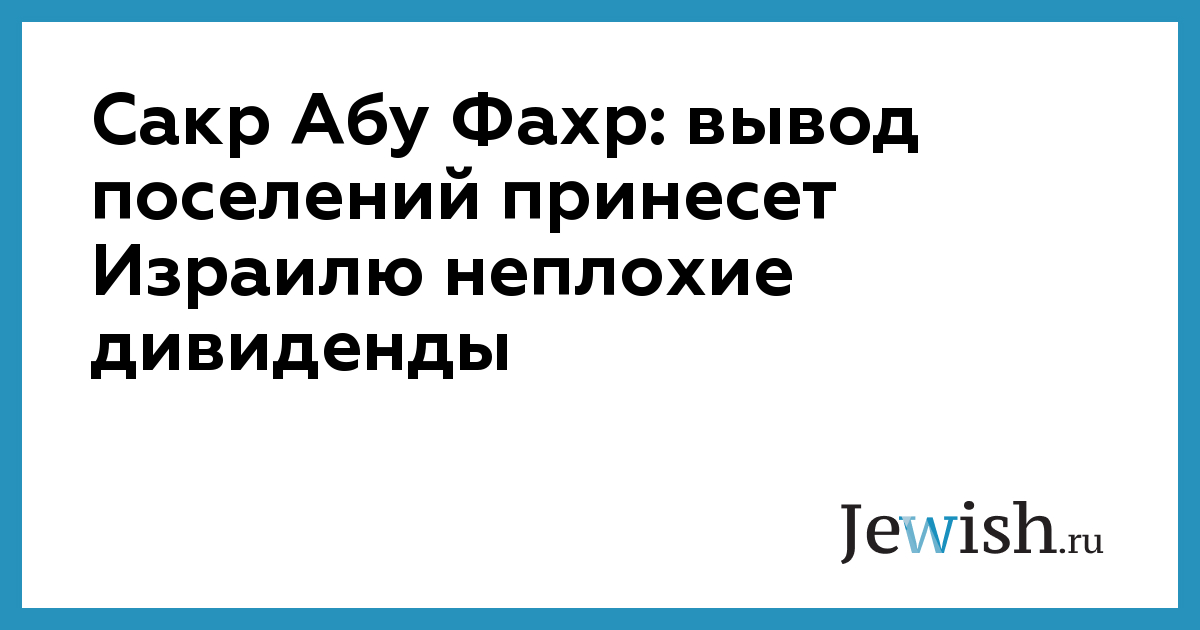 Сакр Абу Фахр: вывод поселений принесет Израилю неплохие дивиденды
