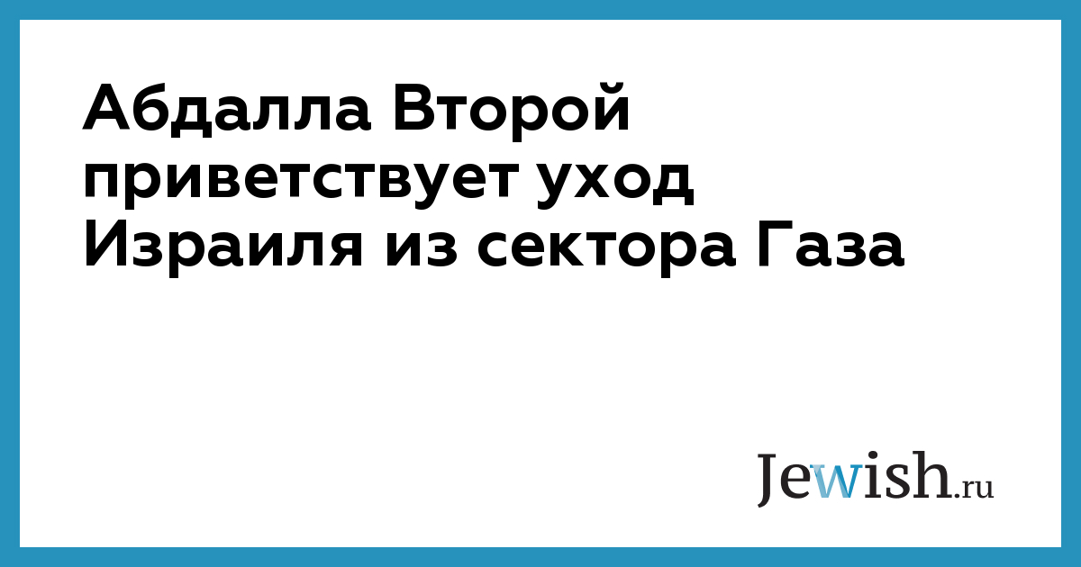 Абдалла Второй приветствует уход Израиля из сектора Газа