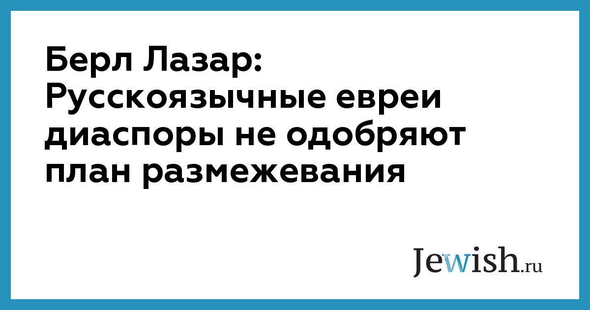 Берл Лазар: Русскоязычные евреи диаспоры не одобряют план размежевания