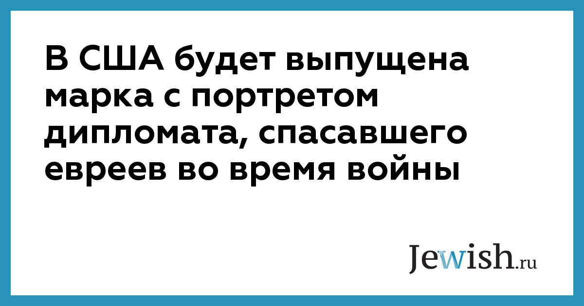 В США будет выпущена марка с портретом дипломата, спасавшего евреев во время войны
