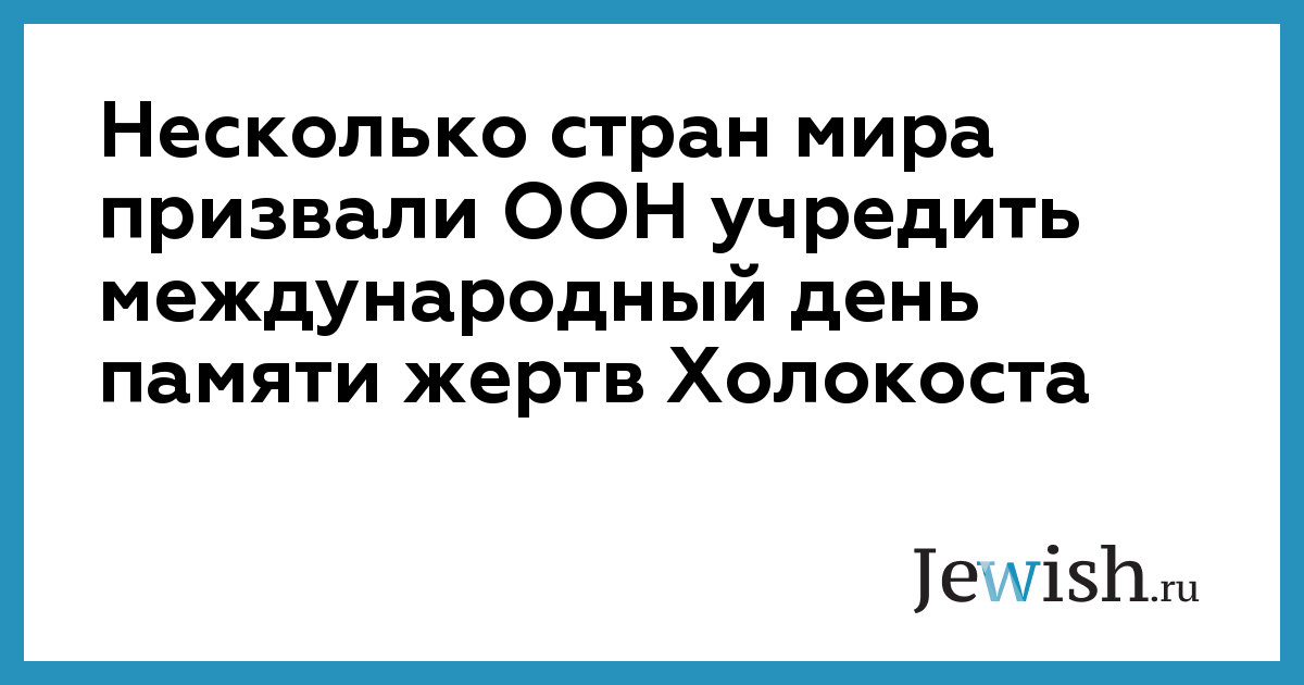 Россия, Соединенные Штаты, Израиль, Австралия и Канада призвали ООН увековечить 27 января — дату освобождения концлагеря Освенцим советскими войсками — в качестве международного Дня памяти жертв Холокоста.