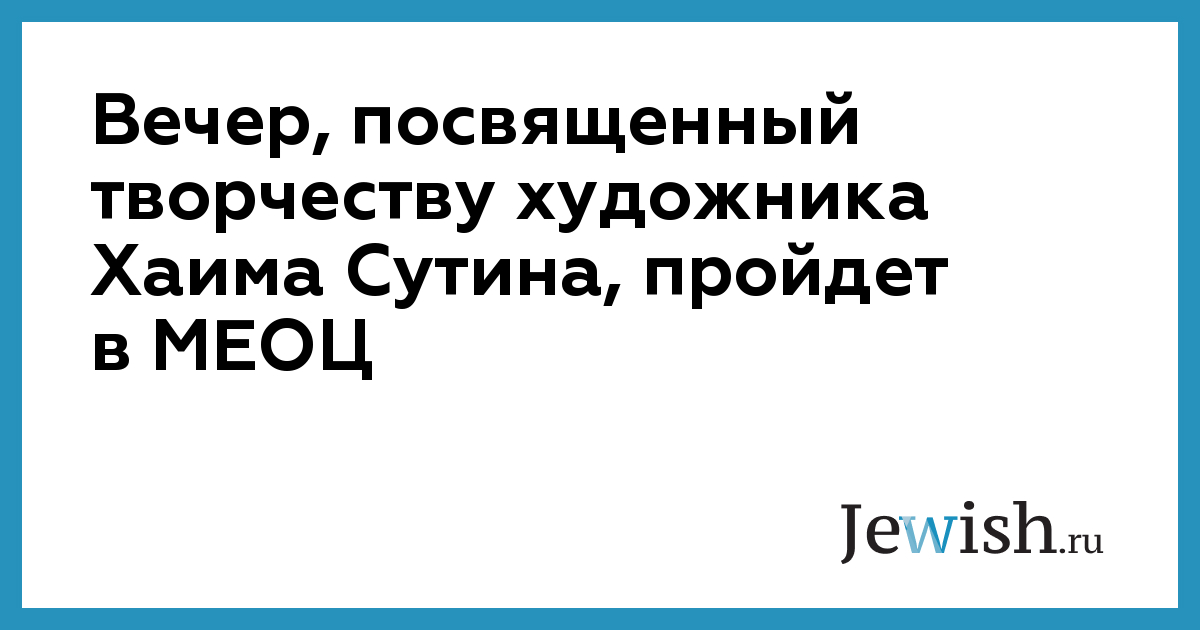 Вечер, посвященный творчеству художника Хаима Сутина, пройдет в МЕОЦ