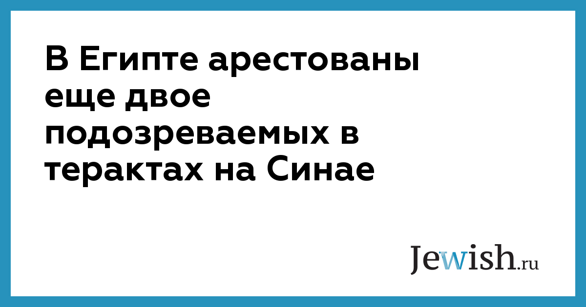 Египетская полиция арестовала еще двоих подозреваемых в причастности к прогремевшим 23 июля в синайском курортном городе Шарм-эш-Шейх взрывам. Как сообщается со ссылкой на сотрудников сил безопасности страны, Хасан аль-Арайши и Абдель Хади Махмуд Хамида были задержаны на Синае, об обстоятельствах их ареста ничего не говорится.