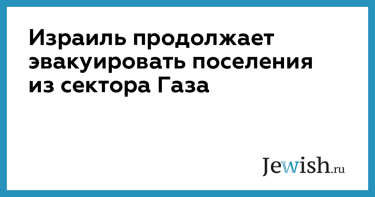 Кроме того, в воскресенье должны быть эвакуированы три поселения на севере сектора Газа: Дугит, Элей-Синай и Нисанит. Там также остаются еще несколько семей, но не ожидается серьезных столкновений. Эвакуация крупного поселения Нецарим намечена на понедельник.