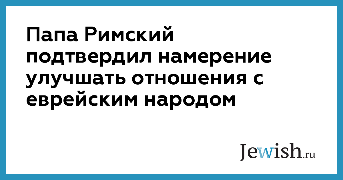 Папа Римский подтвердил намерение улучшать отношения с еврейским народом
