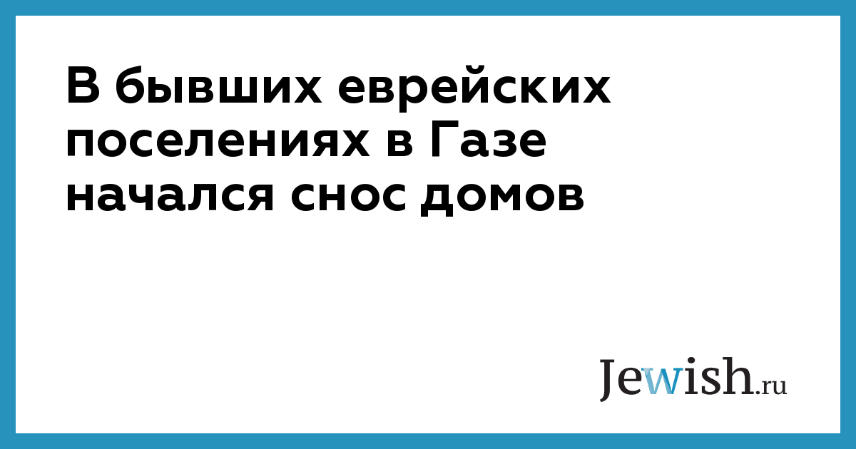 В четырех эвакуированных еврейских поселениях сектора Газа началась процедура сноса жилых домов. Как сообщают местные СМИ, в течение воскресенья бульдозеры сровняли с землей около 30 жилых построек в поселениях Нисанит, Дугит, Пеат-Садэ и Ганей-Таль. 200 бульдозеров сосредоточены на границе сектора Газа в ожидании приказа о начале интенсивных работ по уничтожению жилищ в освобожденных от жителей поселениях.