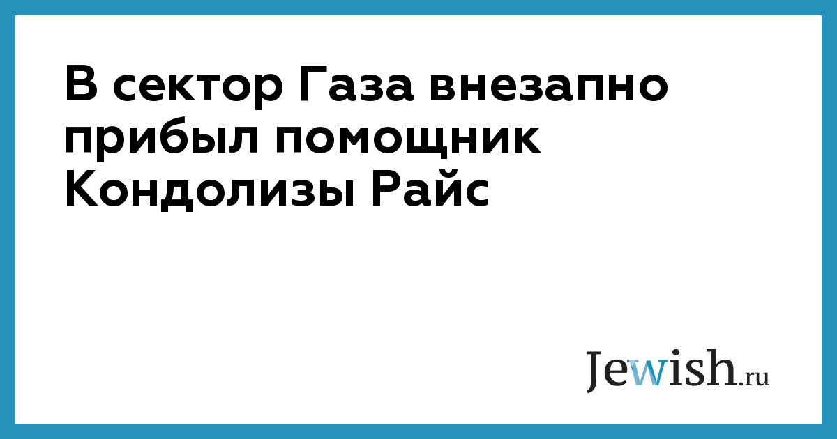 В сектор Газа внезапно прибыл помощник Кондолизы Райс