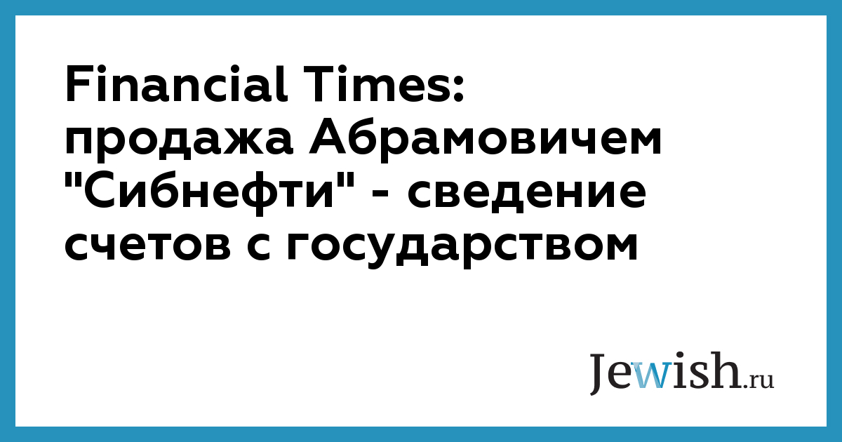 Financial Times: продажа Абрамовичем "Сибнефти" — сведение счетов с государством