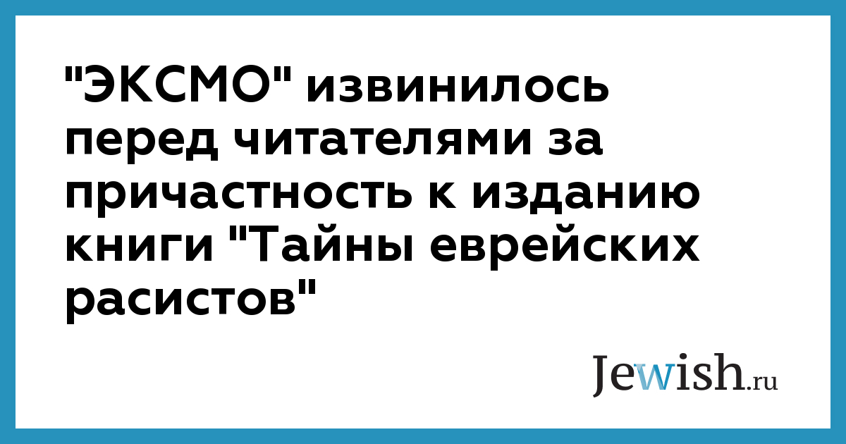 "ЭКСМО" извинилось перед читателями за причастность к изданию книги "Тайны еврейских расистов"