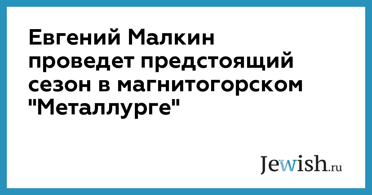 Евгений Малкин проведет предстоящий сезон в магнитогорском "Металлурге"
