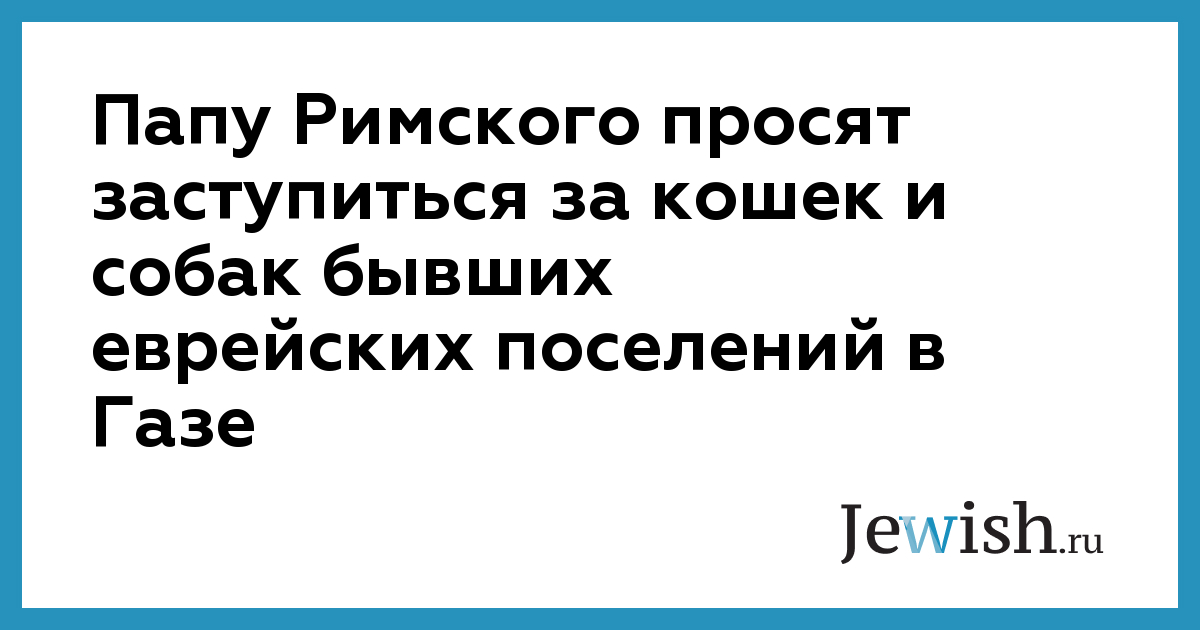 Защитники прав животных в Израиле надеются, что Папа Римский Бенедикт XVI, известной своей любовью к кошкам, поможет им защитить сотни бездомных животных, которые обречены на гибель после ликвидации еврейских поселений в секторе Газы.