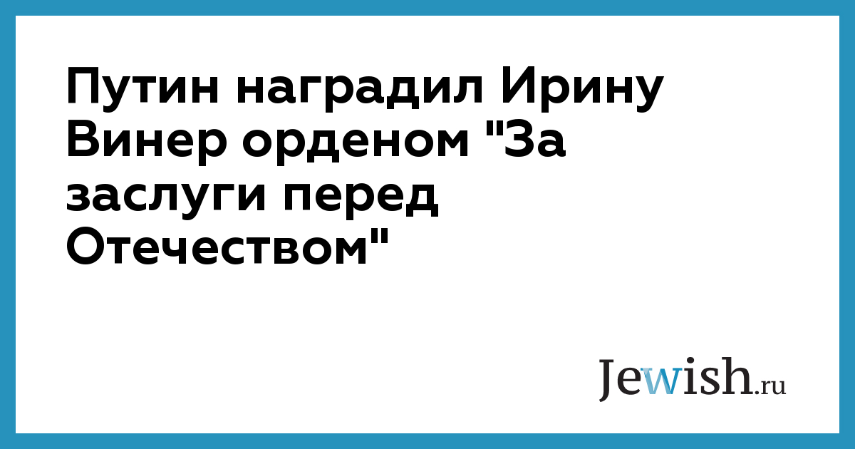 Путин наградил Ирину Винер орденом "За заслуги перед Отечеством"