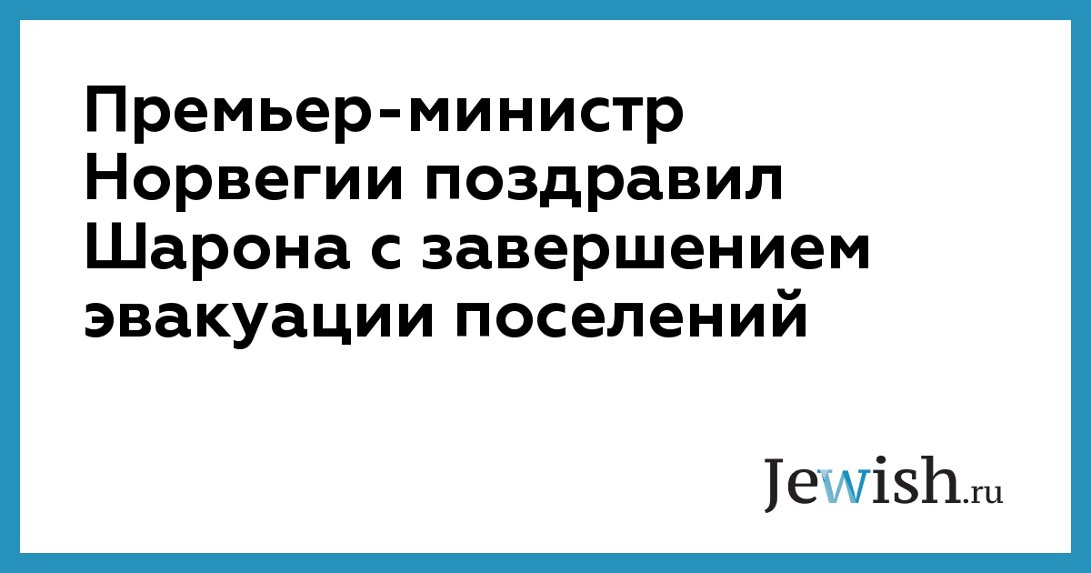 Премьер-министр Норвегии поздравил Шарона с завершением эвакуации поселений