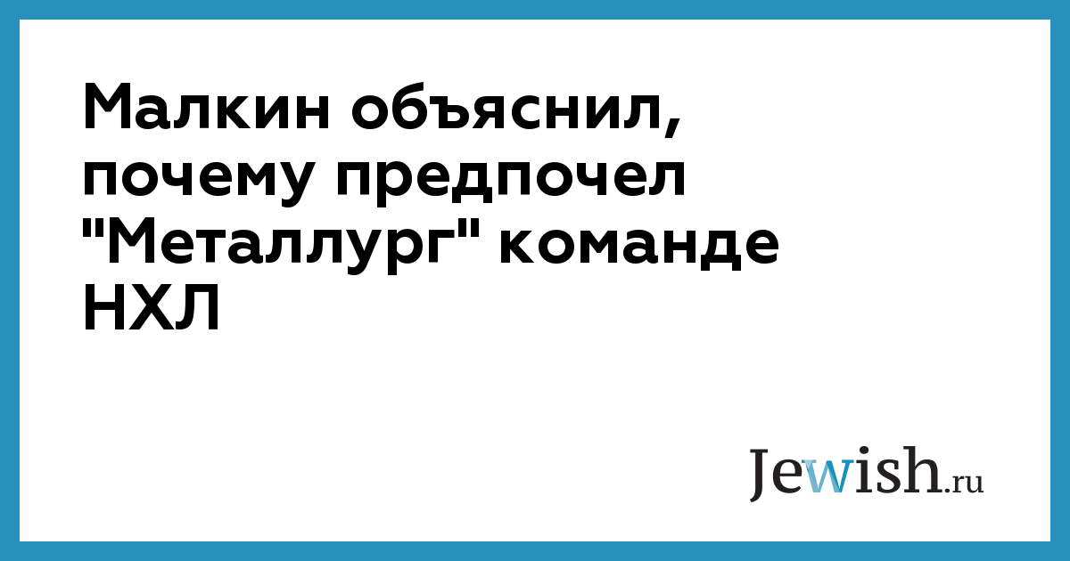Малкин объяснил, почему предпочел "Металлург" команде НХЛ