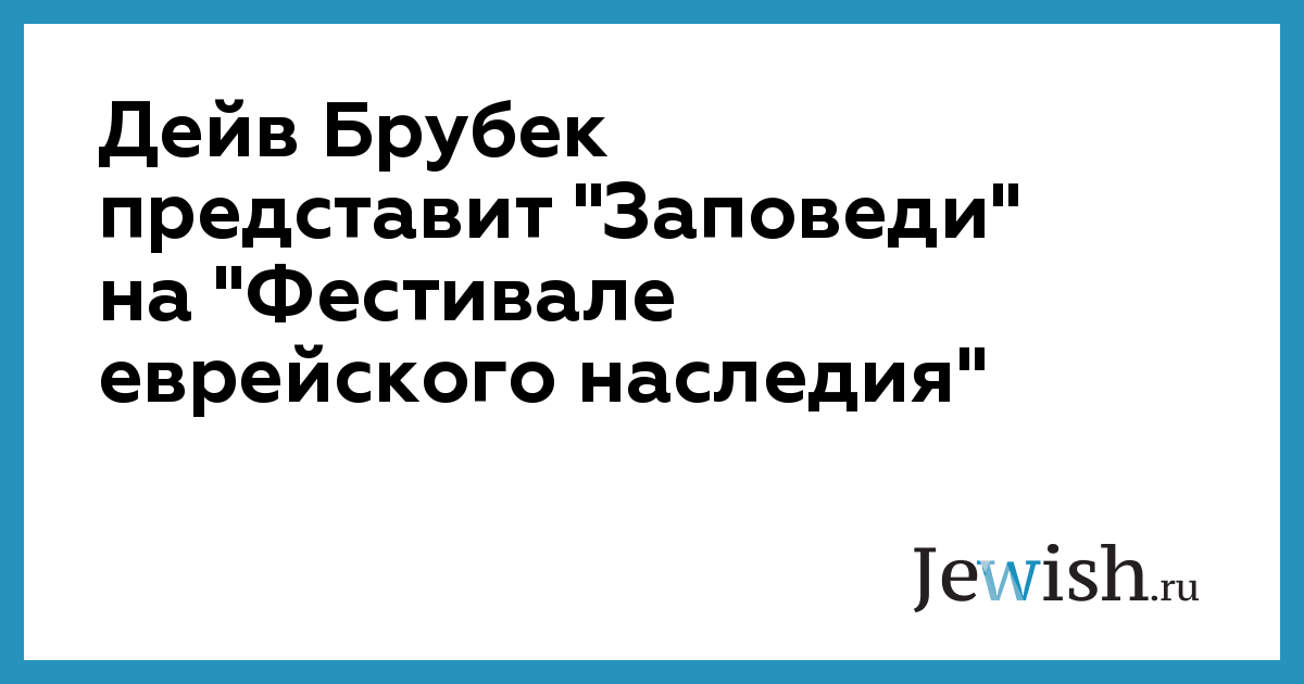 Дейв Брубек представит "Заповеди" на "Фестивале еврейского наследия"