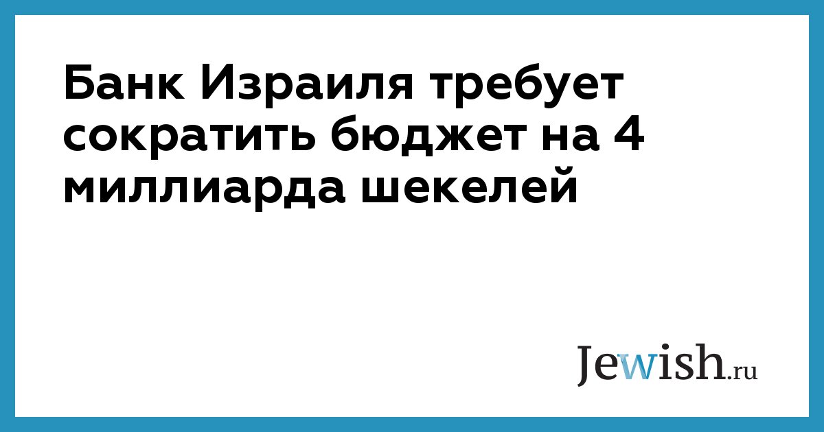 Банк Израиля требует сократить бюджет на 4 миллиарда шекелей