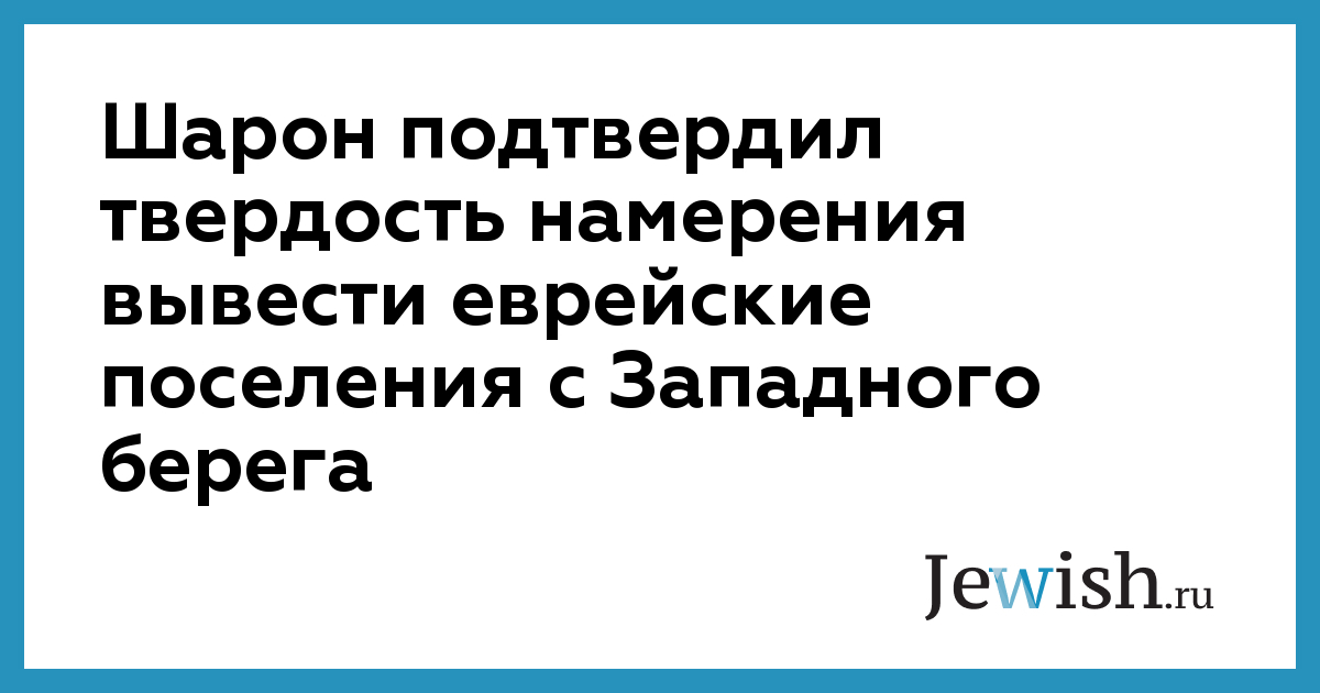 Шарон подтвердил твердость намерения вывести еврейские поселения с Западного берега