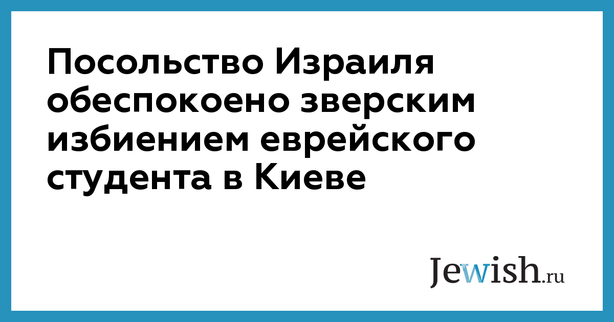 Посольство Израиля обеспокоено избиением в Киеве 28 августа 32-летнего киевлянина, студента Еврейского университета «Ешива», сообщает посольство Израиля. «Посольство Израиля выражает свою крайнюю обеспокоенность случившимся», — сказал представитель посольства, передают «Украинские новости».