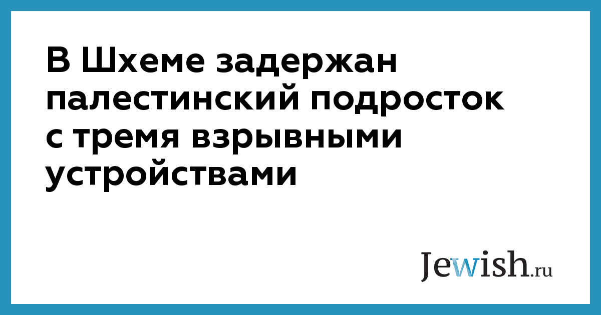Израильские военнослужащие задержали сегодня палестинского подростка, при котором обнаружено три взрывных устройства кустарного изготовления. Как сообщили источники в силовых службах страны, инцидент произошел на контрольно-пропускном пункте близ города Шхема на Западном берегу р.Иордан, передает РБК со ссылкой на Europa Press.