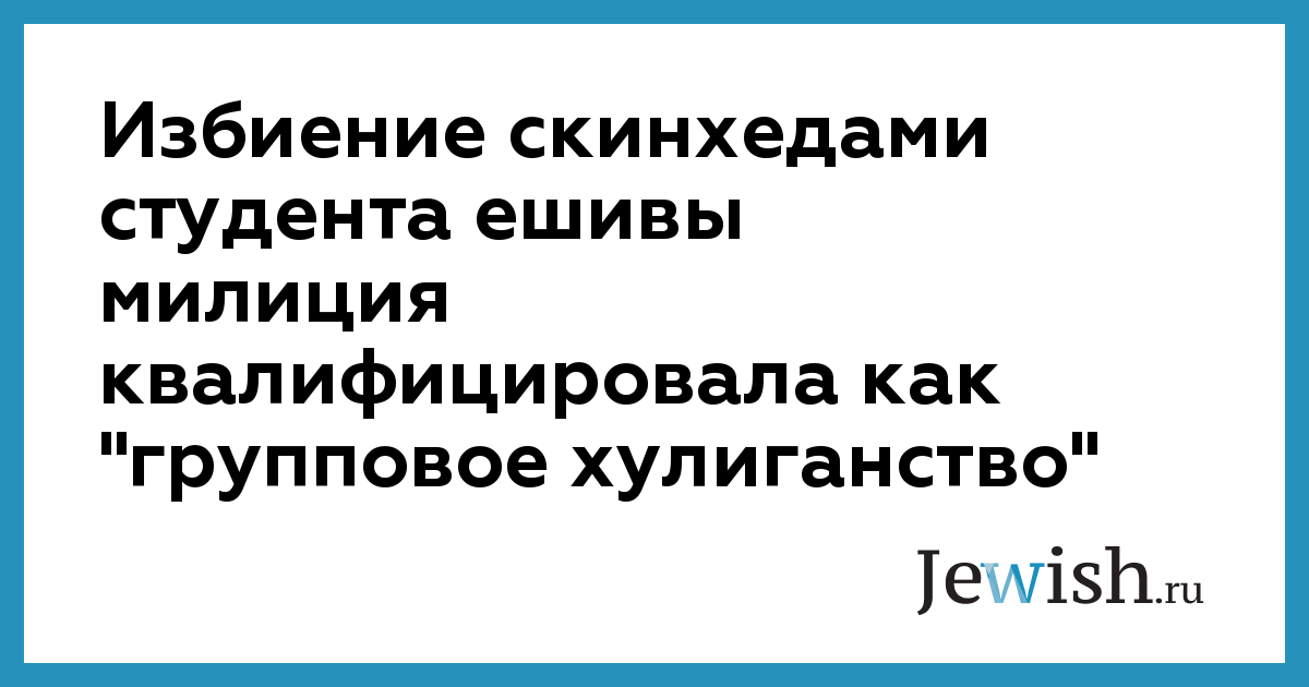 Избиение скинхедами студента ешивы милиция квалифицировала как "групповое хулиганство"