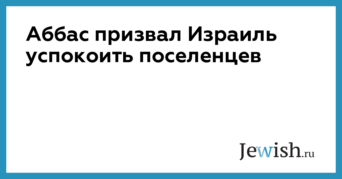 Председатель Палестинской национальной администрации призвал Израиль прекратить "поселенческую активность" на оккупированных территориях.