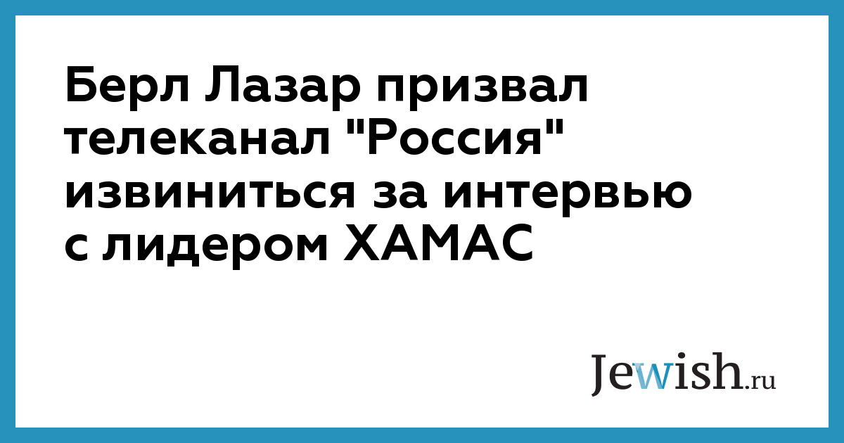 Берл Лазар призвал телеканал "Россия" извиниться за интервью с лидером ХАМАС