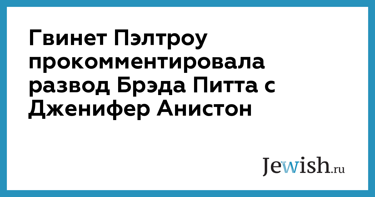В интервью журналу "Time" бывшая невеста Брэда Питта прокомментировала его развод с ее подругой Дженнифер Энистон, предпринятый в преддверии женитьбы на Анджелине Джоли. В первую очередь она убеждена, что все личные дела должны решаться без вмешательства прессы. "Для Брэда и Дженнифер было бы много проще, если бы они вообще ничего публично не говорили друг о друге. Я вызубрила этот урок наизусть, когда мне было 24 года". В 90-е годы бульварная пресса изрядно поклевала роман Пэлтроу с Питтом, прежде чем в 1997 году они расторгли помолвку и Гвинет вышла замуж за Криса Мартина. Но и теперь, прожив с Мартином несколько лет и имея годовалую дочку, Гвинет настроена резко против публикаций о частной жизни. "Наш брак касается лишь нас двоих. Проживем ли мы вместе всю жизнь или нет, это должны обсуждать только мы", – заявила звезда.