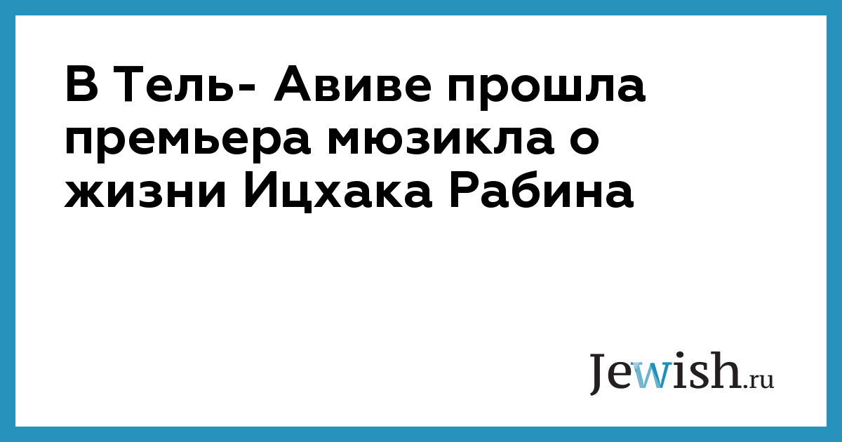 В Тель- Авиве прошла премьера мюзикла о жизни Ицхака Рабина