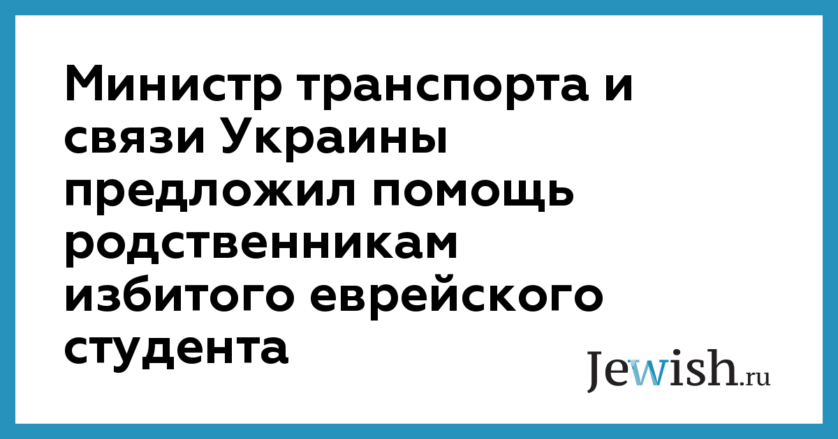 Министр транспорта и связи Украины предложил помощь родственникам избитого еврейского студента