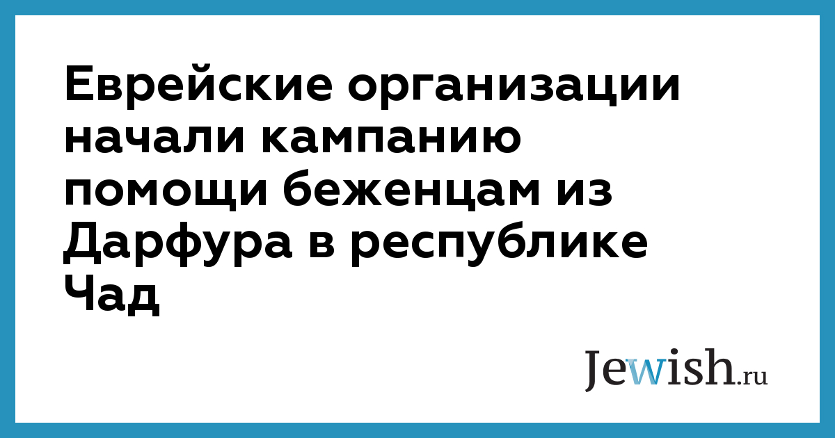 Еврейские организации начали кампанию по сбору средств в помощь беженцам из Судана, нашедшим пристанище в африканской республике Чад.