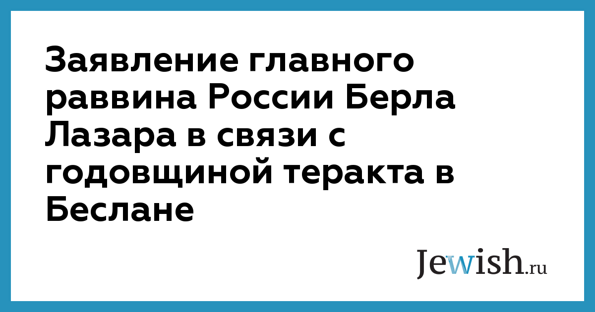 Главный раввин России Берл Лазар сделал заявление в связи с годовщиной теракта в Беслане. Полный текст заявления приведен ниже.