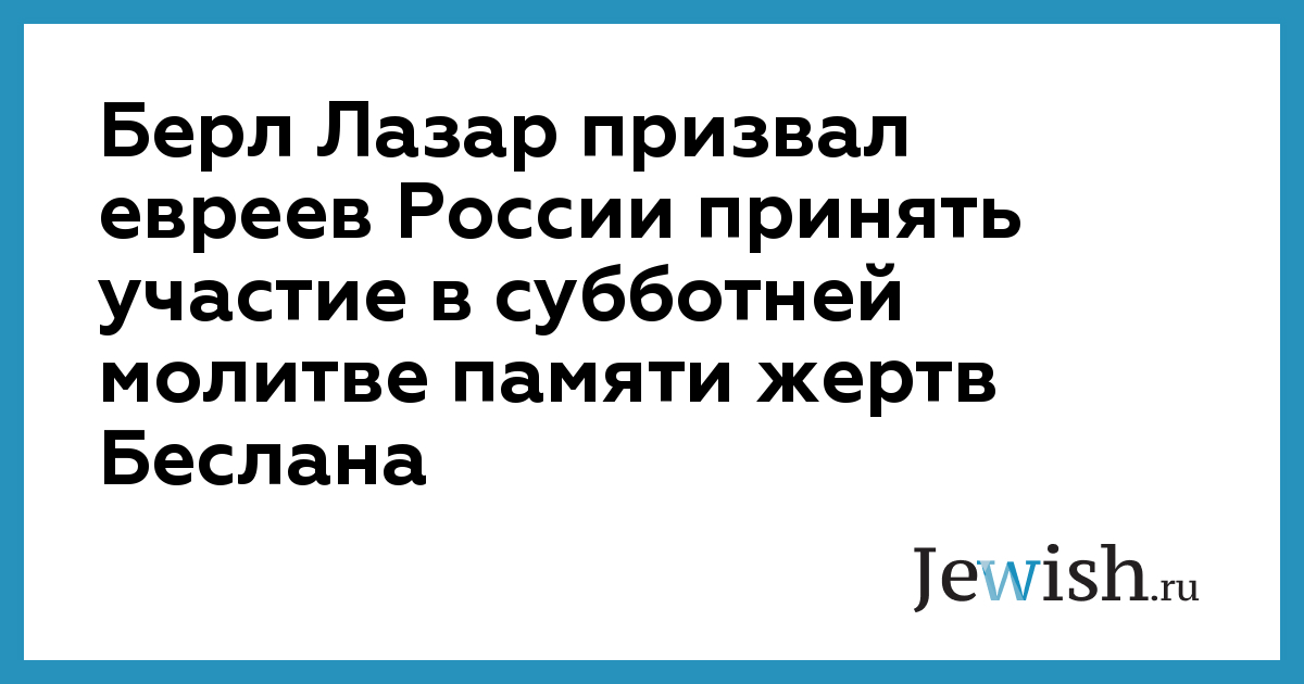 В связи с поминальной молитвой в память о жертвах Беслана главный раввин России обратился ко всем евреям с настоятельным призывом прийти завтра в синагогу и присоединить свой голос к тем, кто просит Б-га защитить невинных людей, помочь пострадавшим, утешить родных и близких жертв террора.