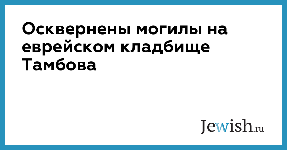 В ночь с 29 на 30 августа 2005 г. на еврейском кладбище Тамбова был совершён акт вандализма — повалены и осквернены 2 памятника, повреждены ограды могил. На одной из могил была оставлена фашистская символика. Сотрудники Советского РОВД Тамбова и районной прокуратуры, прибывшие на место преступления, обнаружили на могилах мусор и около трёх десятков пивных бутылок.