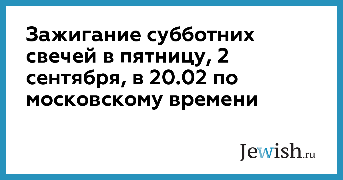 Зажигание субботних свечей в пятницу, 2 сентября, в 20.02 по московскому времени