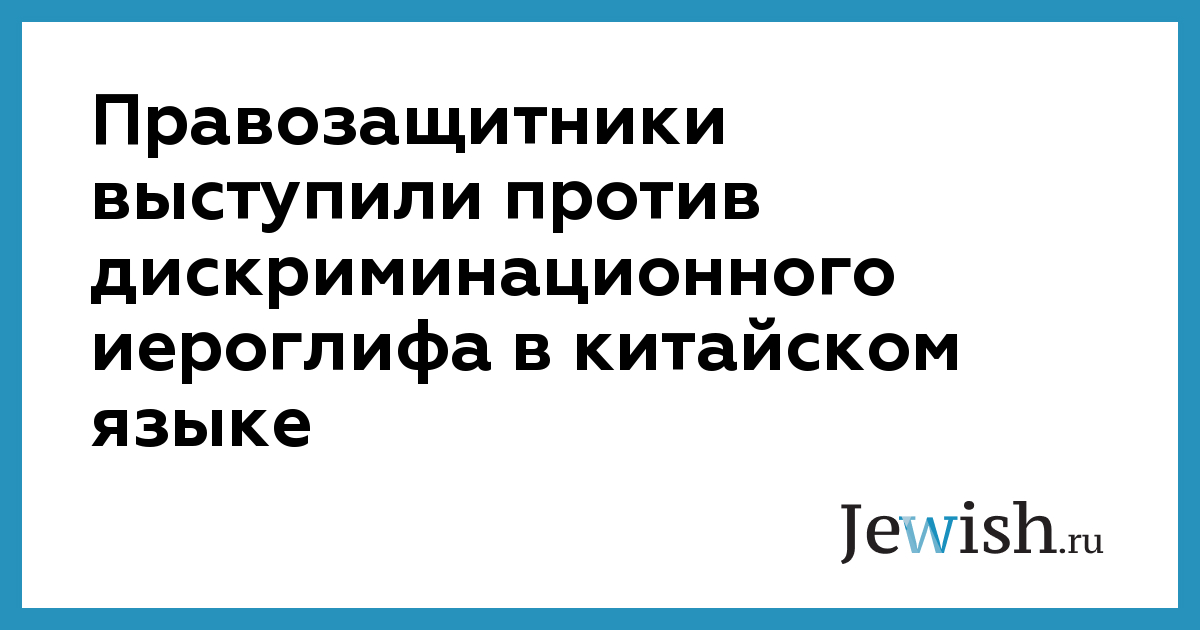 Китайский язык состоит из тысяч иероглифов и их комбинаций. В том числе, таких, которые носят оскорбительный характер. Недавно тайваньская правозащитная организация «Фонд мира» призвала китайских журналистов и ученых по всему миру прекратить «дискриминационный» способ отображения понятия «еврейский народ» в китайском языке, пишет «Jerusalem Post».