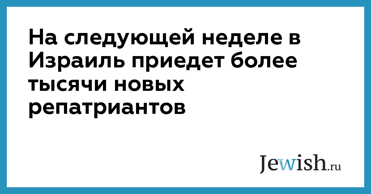 На следующей неделе в Израиль прибудут 1 172 репатрианта и участника молодежных программ НААЛе и СЭЛА. Из стран бывшего СССР ожидается прибытие 799 новых граждан страны, в том числе 228 из России и 39 из Украины.