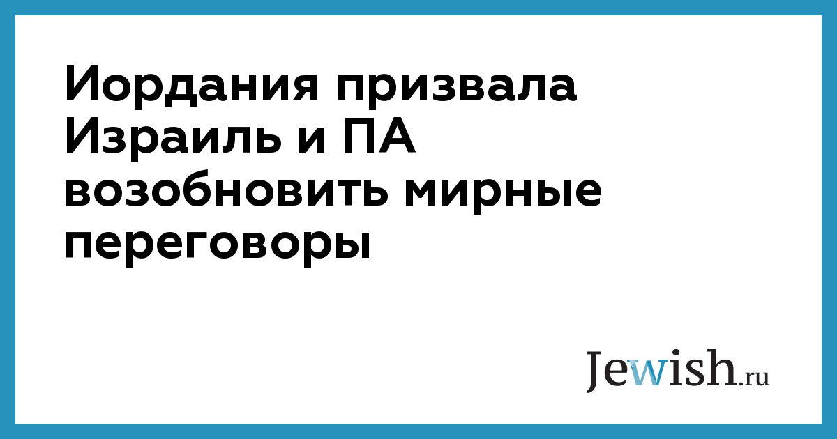 Иордания призвала Израиль и ПА возобновить мирные переговоры