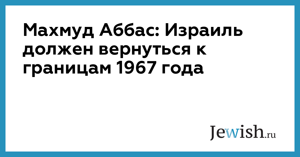 "Мы должны вернуться к подлинным границам", — указал он. Говорить об окончании оккупации можно будет лишь "после полного вывода еврейских поселений и армии с захваченных территорий Западного берега и сектора Газа", сказал Аббас. "Израиль должен вернуться к границам 1967 года, — подчеркнул глава ПНА. Только после этого можно будет говорить о новом этапе в отношениях двух народов".