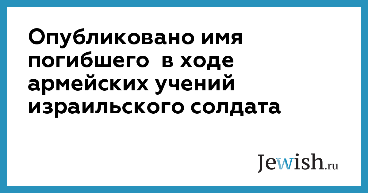 Опубликовано имя погибшего в ходе армейских учений израильского солдата