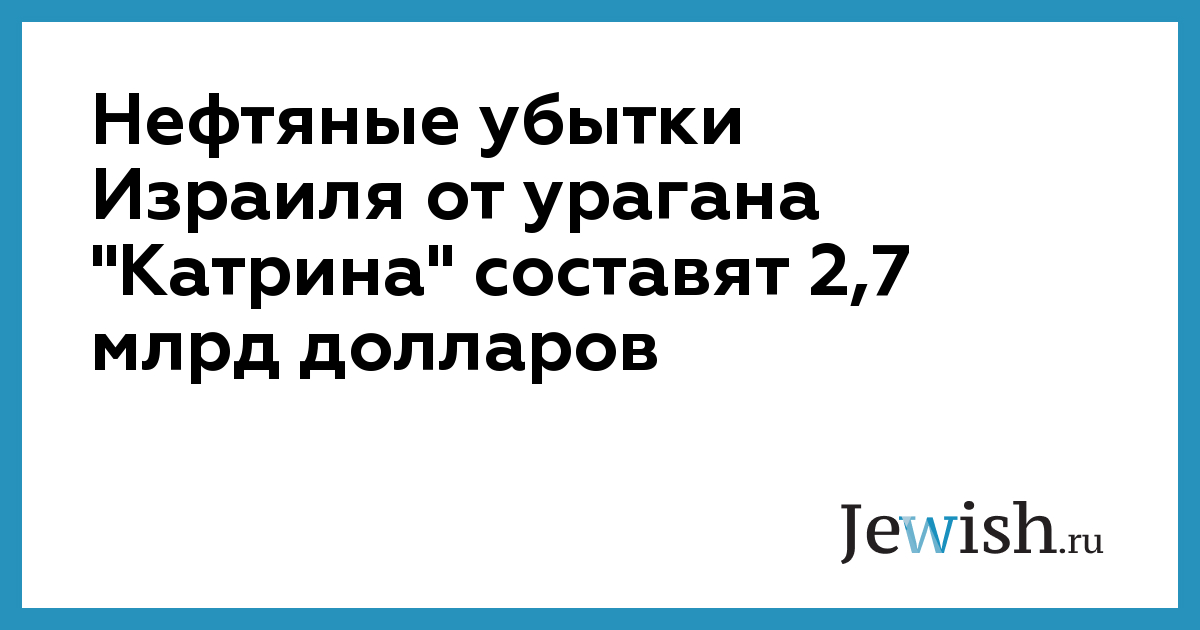 Нефтяные убытки Израиля от урагана "Катрина" составят 2,7 млрд долларов