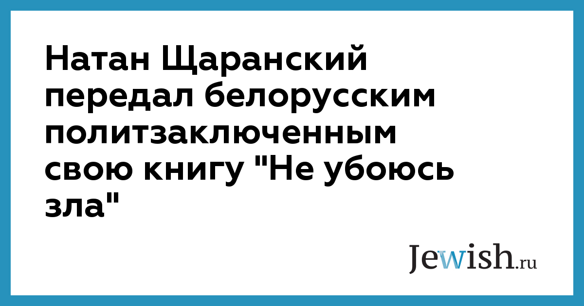 Один из лидеров правящей партии Израиля «Ликуд», бывший министр по делам Иерусалима и еврейской диаспоры Натан Щаранский передал белорусским политзаключенным свою книгу «Не убоюсь зла». Как сообщают белорусские СМИ, в этой книге известный во времена СССР диссидент рассказывает о своем опыте борьбы с тоталитарной советской системой.