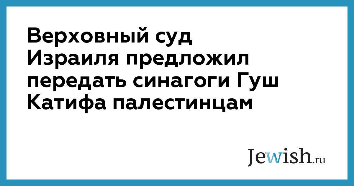 Верховный суд Израиля предложил передать синагоги Гуш Катифа палестинцам