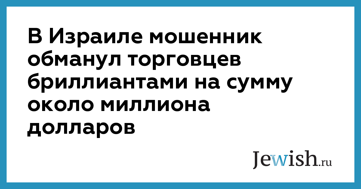В Израиле мошенник обманул торговцев бриллиантами на сумму около миллиона долларов