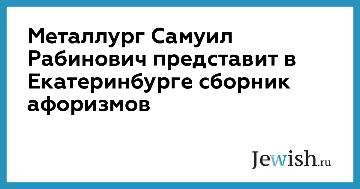 Металлург Самуил Рабинович представит в Екатеринбурге сборник афоризмов