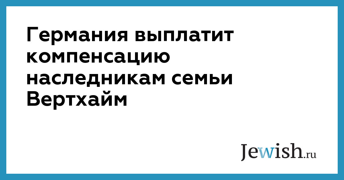 Практически все наследники Вертхаймов сегодня живут в США. Как отмечает DPA со ссылкой на источники в правительстве, компенсация будет выплачена им в течение ближайшего месяца.