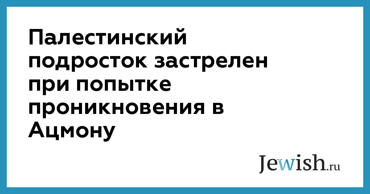 Палестинский подросток застрелен при попытке проникновения в Ацмону